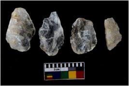 | Description / विवरण | There are n 4 utilized flake cores. Two are tapering at one end and two have blunted edges |