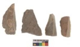 | Description / विवरण | There are n 4 utilized flake cores. There are multidirectional irregular dominant scar pattern on both dorsal and ventral face of the flake cores. Two have sharp edges and two are tapering at one end. |