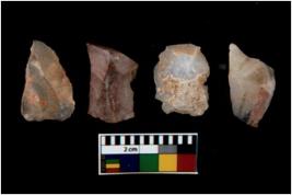 | Description / विवरण | There are n 4 utilized flake cores. Out of them one is made up of Chert and three are made up of Chalcedony. There are multi directional irregular scar pattern on them. Two have sharp edges and two have blunted edges. |