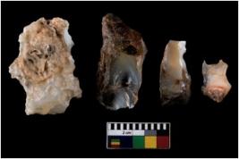 | Description / विवरण | There are n 4 ; worked utilized flakes; there are multidirectional irregular scar pattern on both dorsal and ventral face of the flakes. Two of them are tapering at one end. All are having sharp edges. |