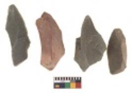 | Description / विवरण | There are n 4 utilized flake cores. There are multidirectional irregular dominant scar pattern on both dorsal and ventral face of the flake cores. Two have sharp edges and two are tapering at one end. |