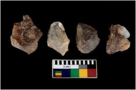 | Description / विवरण | There are n 4 utilized flake cores. There are multi directional irregular scar pattern on them. Two have blunted edges and two have round edges. |