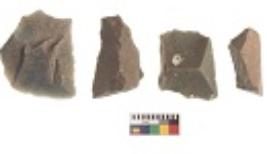 | Description / विवरण | There are n 4 utilized flake cores. There are multidirectional irregular dominant scar pattern on both dorsal and ventral face of the flake cores. Two are tapering at one end and two have blunted edges. |