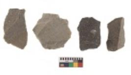 | Description / विवरण | There are n 4 utilized flake cores. There are multidirectional irregular dominant scar pattern on both dorsal and ventral face of the flake cores. Three are tapering at one end and one has blunted edges. |