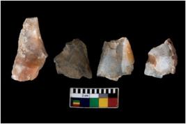 | Description / विवरण | There are n 4 ; worked utilized flakes; there are multidirectional irregular scar pattern on both dorsal and ventral face of the flakes. All are having sharp edges. |