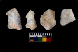 | Description / विवरण | There are n 4 utilized flake cores. One has flat base and three have blunted edges. |