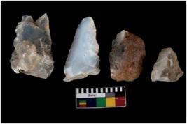 | Description / विवरण | There are n 4 ; worked utilized flakes; there are multidirectional irregular scar pattern on both dorsal and ventral face of the flakes. All are having sharp edges. |