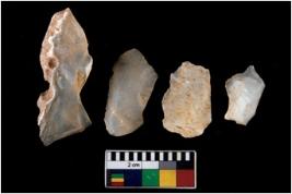 | Description / विवरण | There are n 4 ; worked utilized flakes; there are multidirectional irregular scar pattern on both dorsal and ventral face of the flakes. All are having sharp edges. |