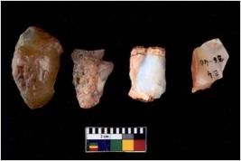 | Description / विवरण | There are n 4 cores; there are multidirectional irregular scar pattern on them. Some of them are tapering at one end. 2 chert and 2 quartz |