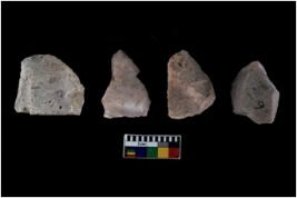 | Description / विवरण | There are n 4 utilized flake cores. There are multidirectional irregular scar pattern on both dorsal and ventral face of the flake cores. One has sharp edges and three have blunted edges. |