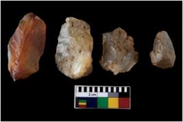 | Description / विवरण | There are n 4 ; worked utilized flakes; there are multidirectional irregular scar pattern on both dorsal and ventral face of the flakes. All are having sharp edges. |