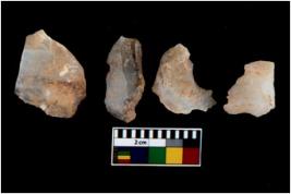 | Description / विवरण | There are n 4 utilized flake cores. There are multi directional irregular scar pattern on them. Two are tapering at one end and two have blunted edges. |