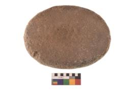 | Description / विवरण | Specimen of a roughly rectangular rubber stone with oval section. It is heaving flat base. |