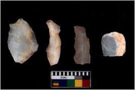 | Description / विवरण | There are n 4 cores. There are multi directional irregular scar pattern on both dorsal and ventral face of the cores. Some have blunted edges and some have round edges. |
