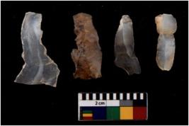 | Description / विवरण | There are n 4 flakes tool; there are large flakes with sides trimmed, Marks of secondary flaking are present on the both the faces. |
