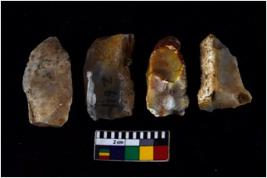 | Description / विवरण | There are n 04 objects; among them all of them have sharp edges, blade removing marks are visible, three are tapering at one end. |
