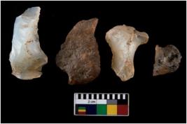 | Description / विवरण | There are n 4 ; worked utilized flakes; there are multidirectional irregular scar pattern on both dorsal and ventral face of the flakes. All are having sharp edges. |