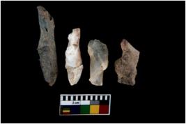 | Description / विवरण | There are n 4 utilized flake cores. Out of them one is made up of Chert and three are made up of Chalcedony. There are multi directional irregular scar pattern on them. Two are tapering at one end and two have sharp edges. |