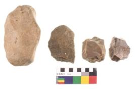 | Description / विवरण | Specimen of a cores with several broad fluted marks and some of them are tapering at one end. |
