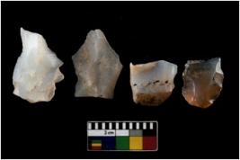 | Description / विवरण | There are n 4 ; worked utilized flakes; there are multidirectional irregular scar pattern on both dorsal and ventral face of the flakes. All are having sharp edges. |