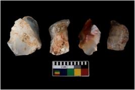 | Description / विवरण | There are n 4 ; worked utilized flakes; there are multidirectional irregular scar pattern on both dorsal and ventral face of the flakes. All are having sharp edges. |