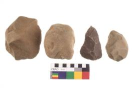 | Description / विवरण | Specimen of a cores with several broad fluted marks and some of them are tapering at one end. |