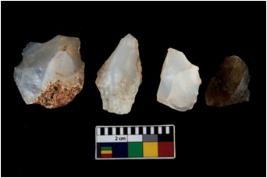 | Description / विवरण | There are n 4 ; worked utilized flakes; there are multidirectional irregular scar pattern on both dorsal and ventral face of the flakes. All are having sharp edges. |