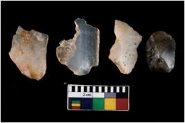 | Description / विवरण | There are n 4 ; worked utilized flakes; there are multidirectional irregular scar pattern on both dorsal and ventral face of the flakes. All are having sharp edges. |