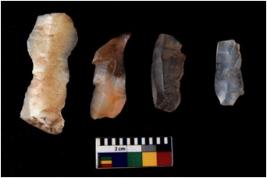 | Description / विवरण | There are n 4 flakes tool; there are large flakes with sides trimmed, Marks of secondary flaking are present on the both the faces. |