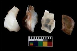 | Description / विवरण | There are n 4 ; worked utilized flakes; there are multidirectional irregular scar pattern on both dorsal and ventral face of the flakes. All are having sharp edges. |