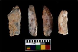 | Description / विवरण | There are n 4 utilized flake cores. There are multi directional irregular scar pattern on them. All of them are tapering at one end. |