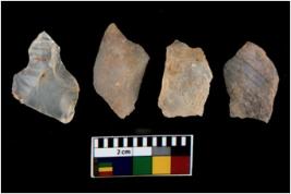 | Description / विवरण | There are n 4 utilized flake cores. There are multi directional irregular scar pattern on them. All of them are tapering at one end. |