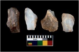 | Description / विवरण | There are n 4 utilized flake cores. Out of them one is made up of Chert and three are made up of Chalcedony. There are multi directional irregular scar pattern on them. Two are tapering at one end and two have blunted edges. |