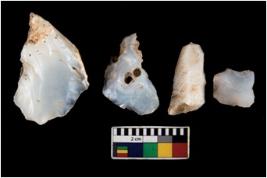 | Description / विवरण | There are n 4 ; worked utilized flakes; there are multidirectional irregular scar pattern on both dorsal and ventral face of the flakes. All are having sharp edges. |