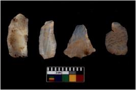 | Description / विवरण | There are n-4 of utilized flake cores. There are multidirectional irregular dominant scar pattern on both dorsal and ventral face of the cores. |