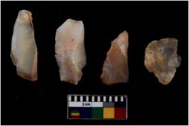 | Description / विवरण | There are n 4 cores. There are multi directional irregular scar pattern on both dorsal and ventral face of the cores. Some have blunted edges and some have round edges. |