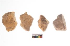 | Description / विवरण | There are n 4 of utilized worked cores and show irregular scar pattern on both dorsal and ventral side. Three are tapering at one end. |