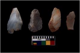 | Description / विवरण | There are n 4 cores; there are multi directional irregular scar pattern on them. Some of them are tapering at one end. 1 chalcedony 1 chert and 2 chert |