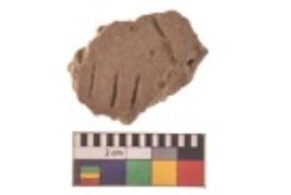 | Description / विवरण | Specimen with slanting engraved dotted incisions and having rough surface. |