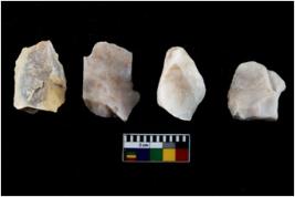 | Description / विवरण | There are n 4 utilized flake cores. There are multidirectional irregular scar pattern on both dorsal and ventral face of the flake cores. One has sharp edges and three have blunted edges. |
