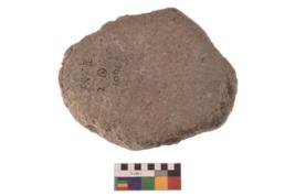 | Description / विवरण | Specimen of an oval shaped rubber stone with rectangular section and concave end. |