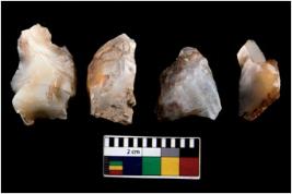 | Description / विवरण | There are n 4 ; worked utilized flakes; there are multidirectional irregular scar pattern on both dorsal and ventral face of the flakes. All are having sharp edges. |