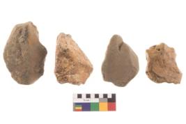 | Description / विवरण | Specimen of a cores with several broad fluted marks and some of them are tapering at one end. |