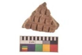 | Description / विवरण | Specimen with triangular shape engraved linear incisions and having rough surface. |
