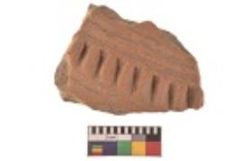 | Description / विवरण | Specimen with rectangular shape, engraved vertical linear incisions and deep groove make a petal shaped design having rough surface. |