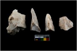 | Description / विवरण | There are n 4 utilized flake cores. There are multidirectional irregular scar pattern on both dorsal and ventral face of the flake cores. One has sharp edges and three have blunted edges. |