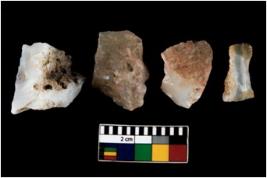 | Description / विवरण | There are n 4 ; worked utilized flakes; there are multidirectional irregular scar pattern on both dorsal and ventral face of the flakes. All are having sharp edges. |