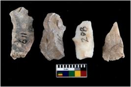 | Description / विवरण | Specimen of flake tools with prominent flaking marks. They are made up of a short flakes with sides trimmed. |