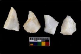 | Description / विवरण | There are n 4 utilized flake cores. Two have sharp edges and two have blunted edges. |