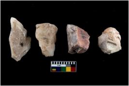 | Description / विवरण | There are n 4 utilized flake cores. There are multidirectional irregular scar pattern on both dorsal and ventral face of the flake cores. One has sharp edges and three have blunted edges. |